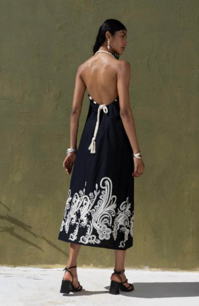 Midi black dress with white embroideries