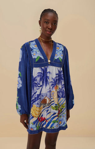 Sand Foliage Sketch Euroflax™ Premium Linen Mini Dress