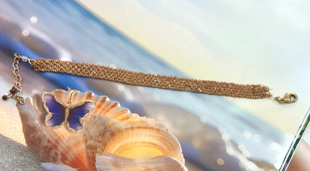 Fine hand-woven chains with colored threads 24-karat gold plating, 1 micron, on a brass base Lobster clasp closure