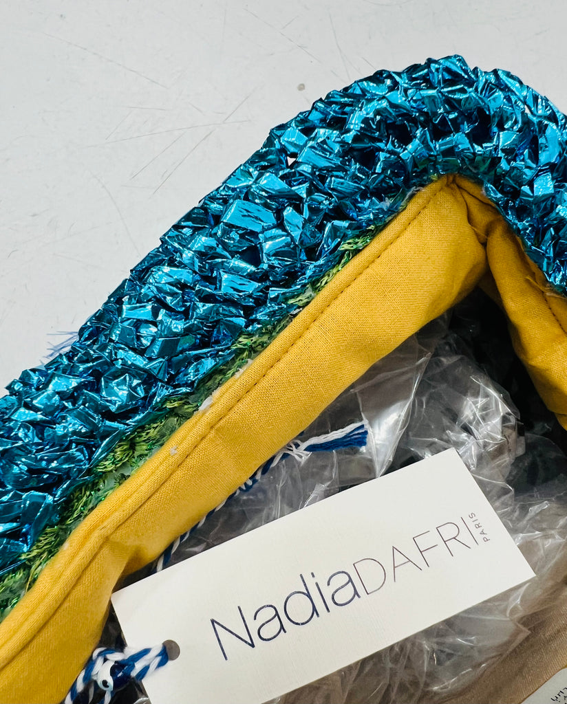 Nadia Dafri clutch bag, handmade, with hand crocheted metal clasp, fabric lined interior, made of soft and luxurious velvet yarn. Due to the handmade nature of the product, no other bag can be identical to the one you have and there may be slight variations in sizes.