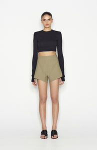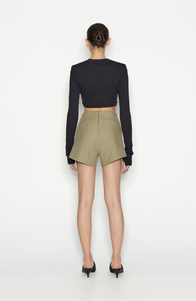 The Desert shorts are a warm-weather essential. The high-waisted design and subtle flare create a flattering, elongated silhouette, while the structured fit adds a polished touch. Minimalistic and versatile, they pair beautifully with everything from crisp blouses to relaxed oversized shirts. Dress them up with heels or keep it casual with sneakers for an understated, chic look.